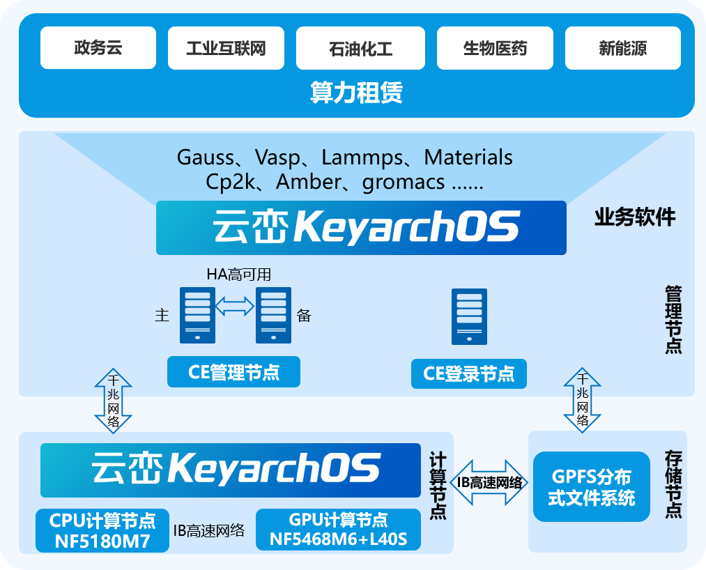 采用浪潮信息云峦KeyarchOS作为计算、管理节点操作系统,兼容高性能相关硬件设备、专业应用等,与上层软件、管理平台兼容性良好,提供超高的业务稳定性,提供统一交付、统一运维、统一售后。