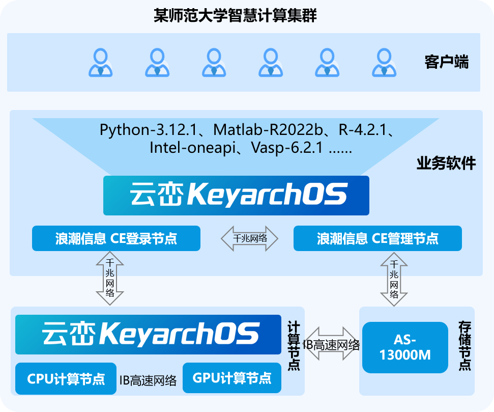采用浪潮信息KeyarchOS作为计算、管理节点操作系统,支撑Python、Matlab、Mathematic等专业应用,与上层软件、管理平台兼容性良好,提供超高的业务稳定性。基于出厂预装提高交付效率,提供统一运维。