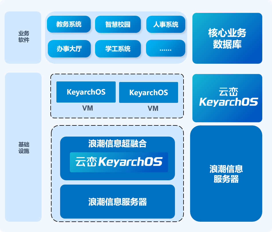 经过横向对比测试,选用浪潮信息云峦KeyarchOS作为新操作系统,逐步推进替换。先在非核心业务上进行操作系统替换,稳定运行一段时间后,再将其他业务逐步迁移至KeyarchOS 。