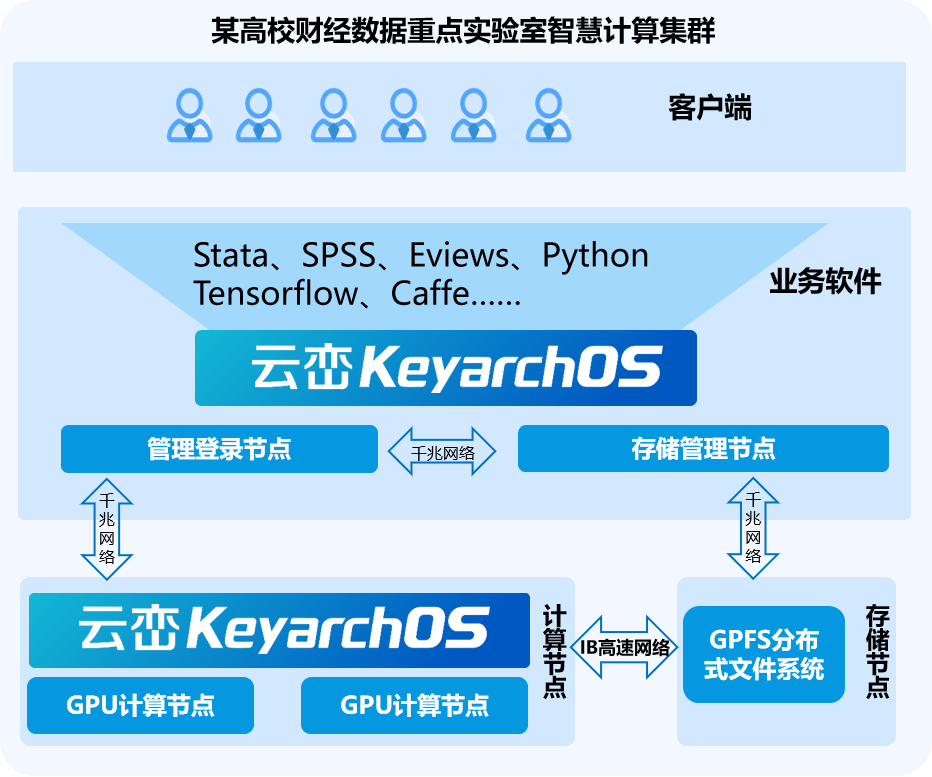 该大学建设财经数据重点实验室智慧计算集群,项目采用6个GPU计算节点,GPFS分布式存储系统,用于财经数据领域相关研究。