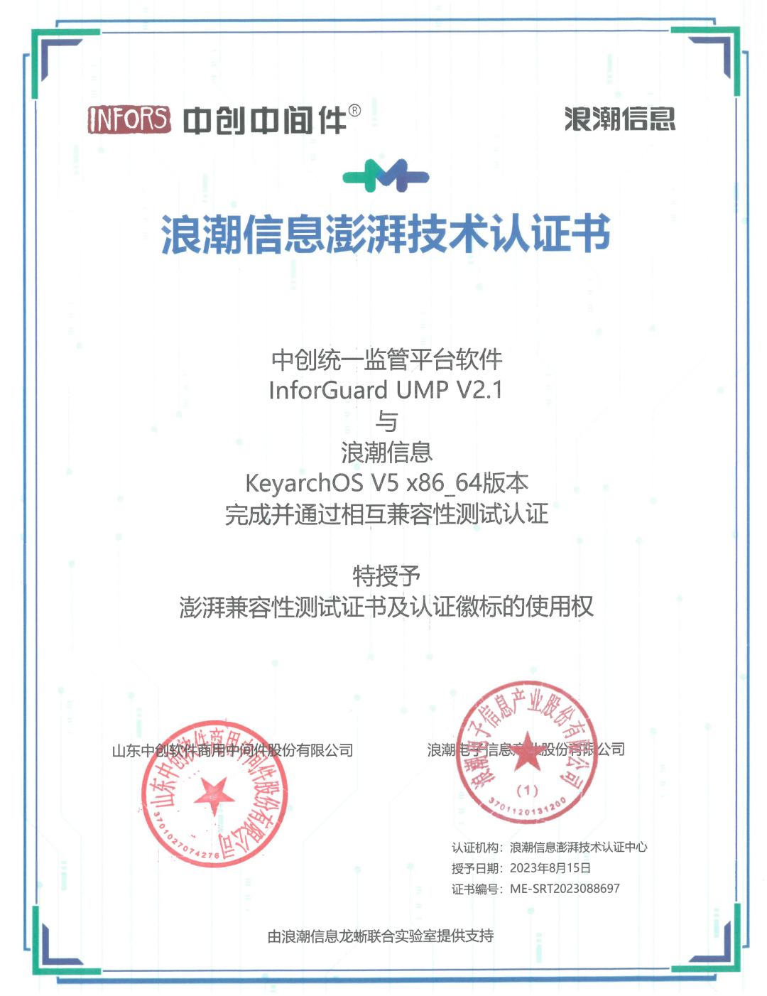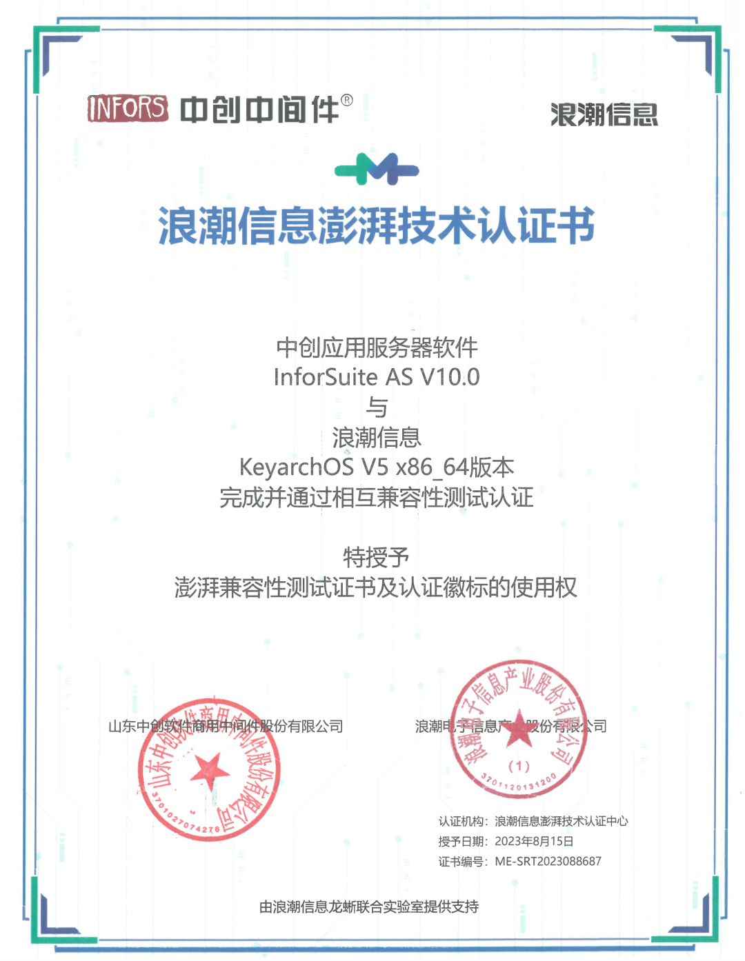 日前,中创股份全系列产品与浪潮信息服务器操作系统云峦KeyarchOS完成适配测试及生态认证,测试结果显示,双方产品完全兼容、产品间协同稳定运行,性能卓越,能为企业应用提供可靠保障。