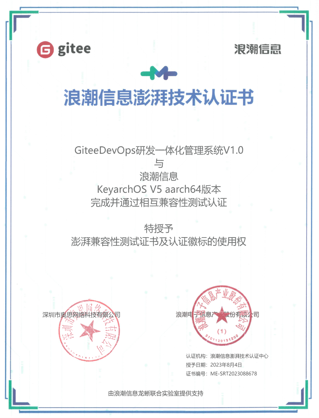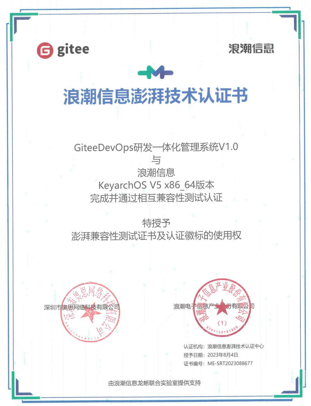 此次Gitee与keyarchOS完成兼容性互认证测试,进一步扩大了开源操作系统的生态版图,未来双方将继续在各领域加强联合创新,致力于为用户提供高质量、高效率的研发效能解决方案,推动企业的数字化转型和创新发展。