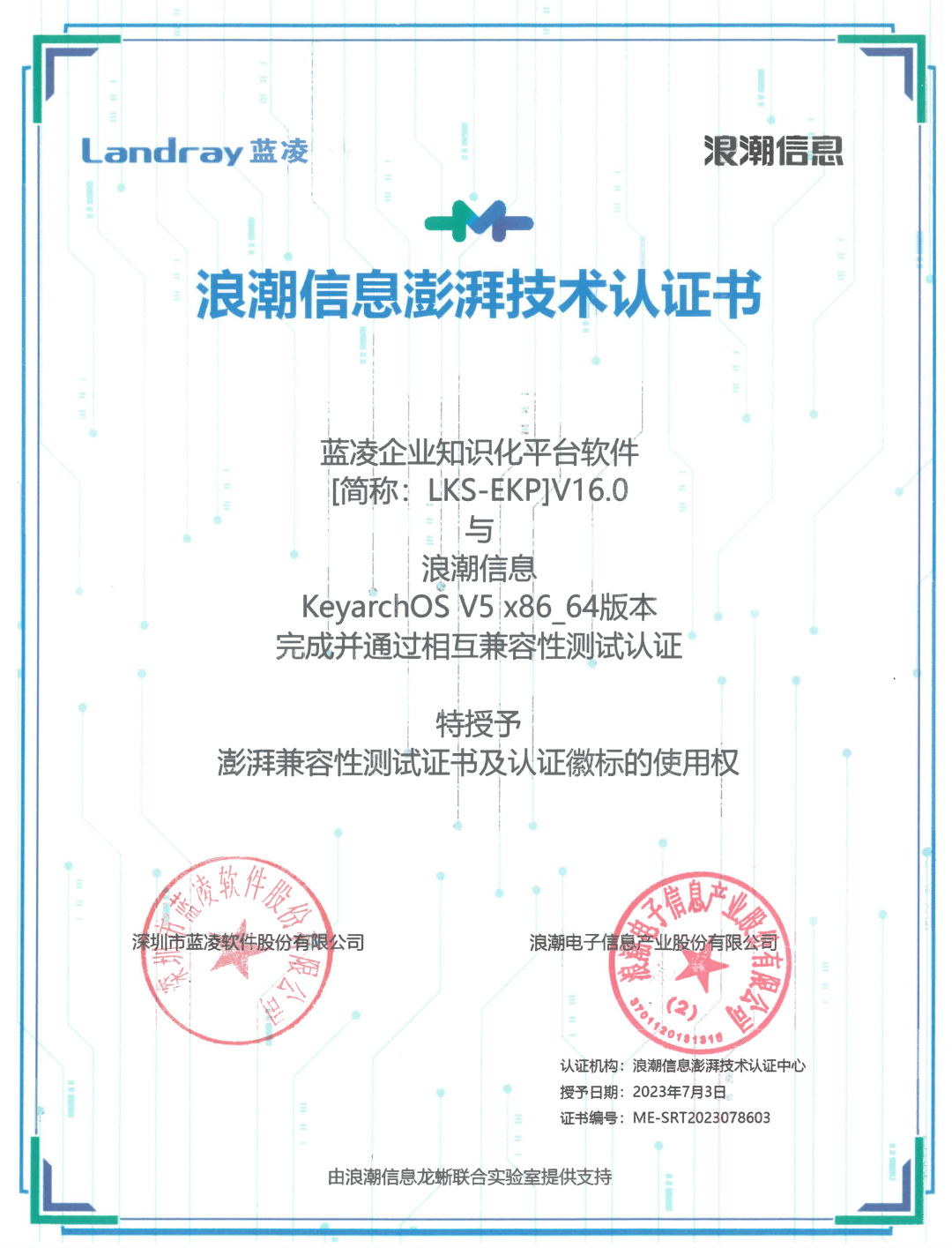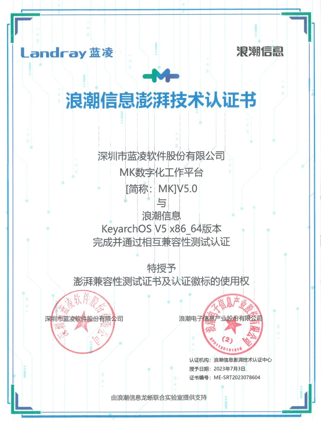 日前,深圳市蓝凌软件股份有限公司(简称蓝凌软件)的数字化办公平台软件、企业知识化平台软件、MK数字化工作平台与浪潮信息云峦操作系统KeyarchOS完成产品兼容性互认证测试。测试结果显示,双方产品功能兼容性良好,整体运行流畅,性能表现优异,可为用户办公提供可靠保障,满足关键性应用需求。