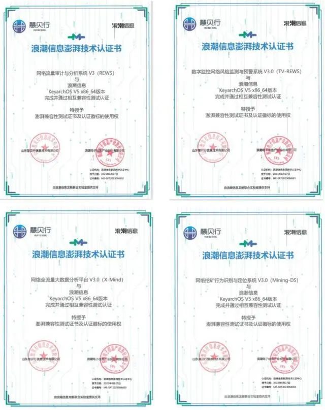 日前,慧贝行旗下4款产品(即数字监控网络风险监测与预警系统V3.0、网络流量审计与分析系统V3.0、网络全流量大数据分析平台V3.0、网络挖矿行为识别与定位系统V3.0)与浪潮信息云峦KeyarchOS(简称浪潮信息KOS) V5完成兼容性适配认证。测试结果显示,双方产品完全兼容,整体运行稳定高效,在功能、性能及兼容性方面表现良好,可充分满足用户关键性应用需求。