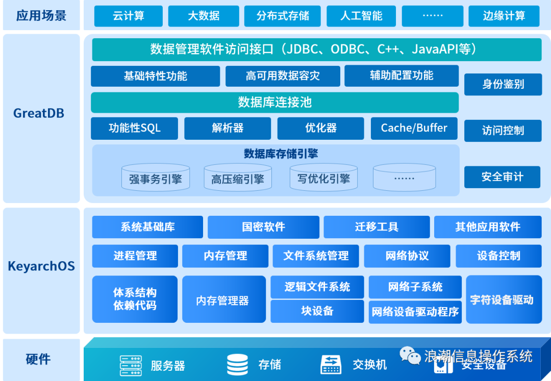 此次适配由浪潮信息龙蜥联合实验室提供技术支持,双方完成了配置、功能、兼容性、性能、稳定性等一系列严格测试,GreatDB V1.0、V5.1与浪潮信息云峦KeyarchOS V5操作系统完全兼容,将为不同应用场景的业务提供更多安全可靠、性能卓越的联合解决方案。