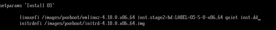 5.在系统的grub界面中,选择需要安装的操作系统内核,按“e”键进入编辑模式,在linuxefi行末添加inst.dd参数,按“ctrl+x”启动安装;