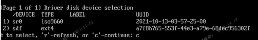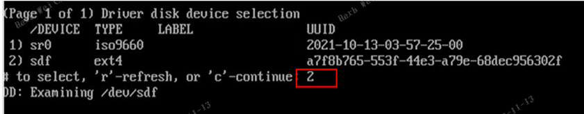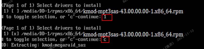 (2)选择U盘中的驱动rpm包,并输入“c”加载驱动文件;
