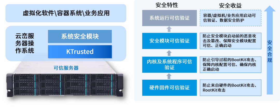 安全合规:KTrusted遵循网络安全等级保护系列规范设计,满足相关规范“可信验证”技术要求。