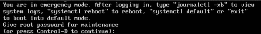 根据提示,输入root密码或按Control-D组合键,进入系统后执行journalctl –xb命令查看系统日志。