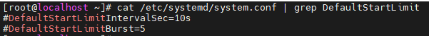 通过如下命令可查看系统systemd中start limit的默认阈值设置:一个服务在10秒内最多允许启动5次。