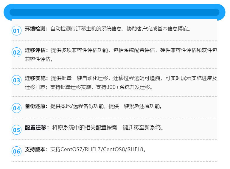 随着CentOS官宣停服,开源社区版CentOS的生命周期也即将结束,这将会对企业业务带来巨大的风险。CentOS迁移替换工作迫在眉睫。CentOS迁移工具需要解决如下技术难点: