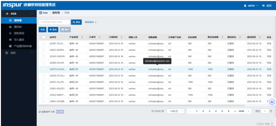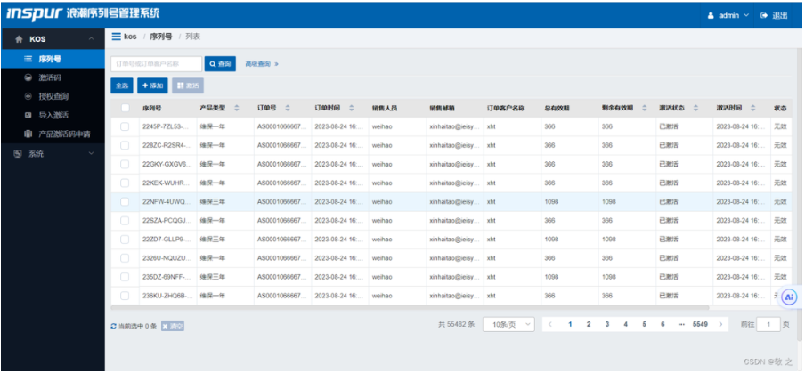 输入用户名和密码之后进入浪潮信息序列号管理系统后台;