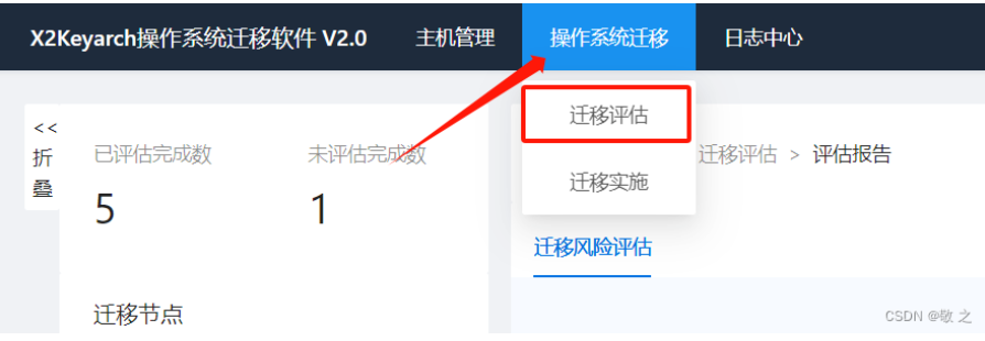 选择 “操作系统迁移”–>“迁移评估” 评估迁移风险;