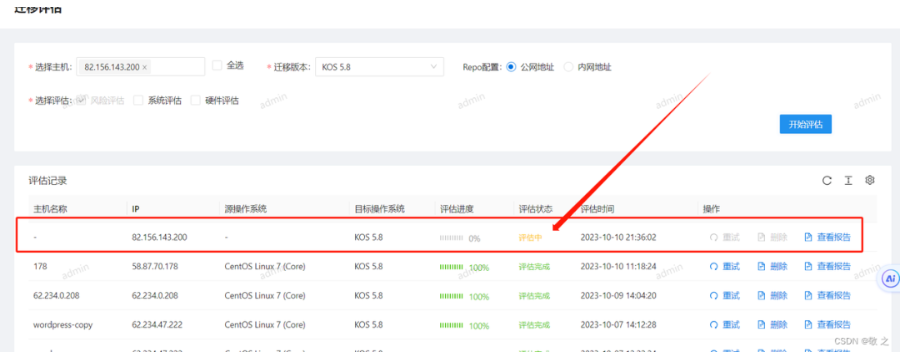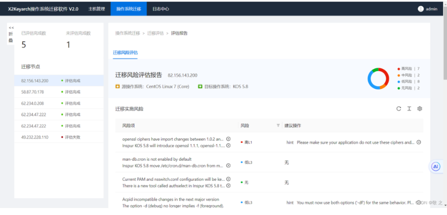 [注]:这里的评估主要是为了评估本次迁移是否存在风险,系统评估是为评估系统配置信息与 KOS 系统是否兼容,硬件评估是为了评估系统下硬件与 KOS 系统是否兼容。