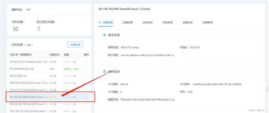 打开主机管理页面,找到 IP 为 82.156.143.200 的主机,也就是我们第一步中所验证的那台被迁移服务器;