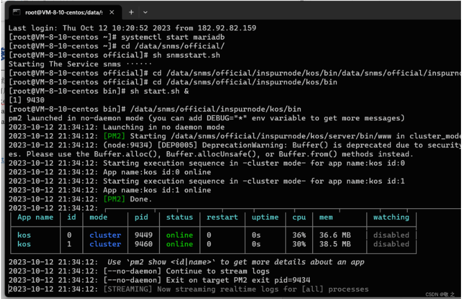 迁移结束之后再次登录被迁移服务器,并启动前后端程序;