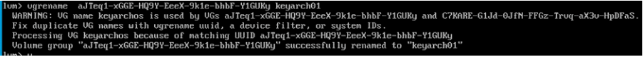 (3) 执行vgrename vg_uuid new_vg_name命令修改vg name名称;