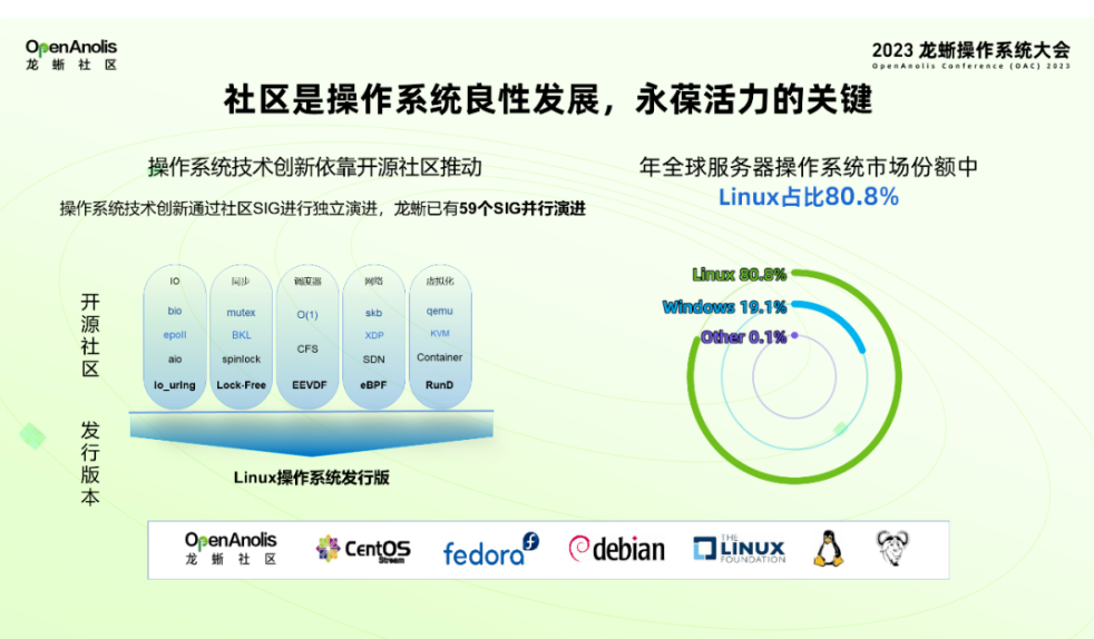 开源开放大趋势是操作系统本身永葆活力的关键。操作系统社区还是很丰富的,龙蜥、debian 等社区都是发展整个产业的关键力量。