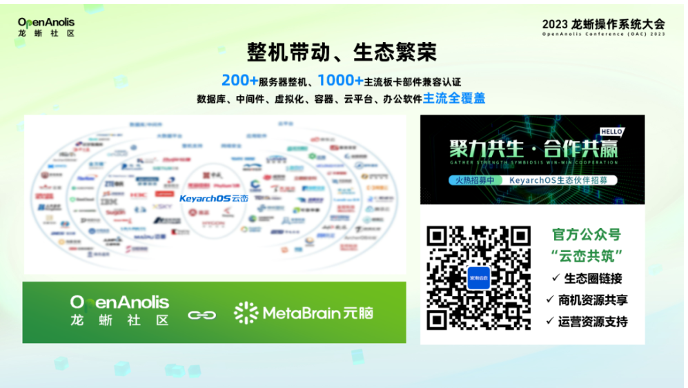 生态方面,浪潮信息正式向大家发起生态招募,无论是南向硬件还是北向应用,欢迎大家加入龙蜥社区与 KOS 生态圈。