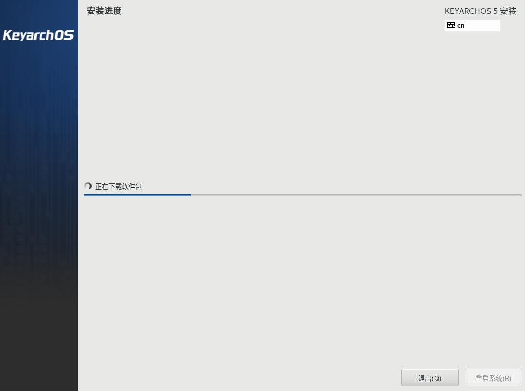 系统在安装过程中,安装界面卡在下载软件包界面一直转圈,进度条不继续走,长时间停留在该界面,具体如下: