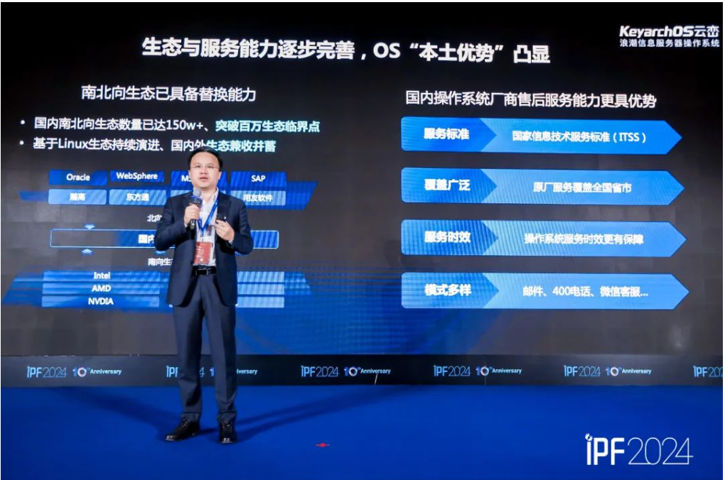 在本场论坛上,浪潮信息系统软件产品部总经理苏志远发表了《筑基智算,云峦操作系统同行》主题分享:CentOS停服事件恰逢IT产业云计算和AI的革新浪潮汹涌之际,催生大量商业版OS市场需求,给国内OS带来进一步发展的绝佳时机。同时,国内OS根社区蓬勃发展,持续推动技术创新与产业进步,国内OS认可度持续提升,龙蜥OS成为CentOS迁移首选。龙蜥OS衍生版云峦KOS立足于浪潮信息数十年OS研发经验沉淀,软硬协同打造极致性能,全方面提升稳定可靠能力、内生安全机制、系统运维效率。面向人工智能时代,KOS以应用为导向、与业务深度融合,联合智算软件栈及算力系统打造开箱即用的大模型解决方案。