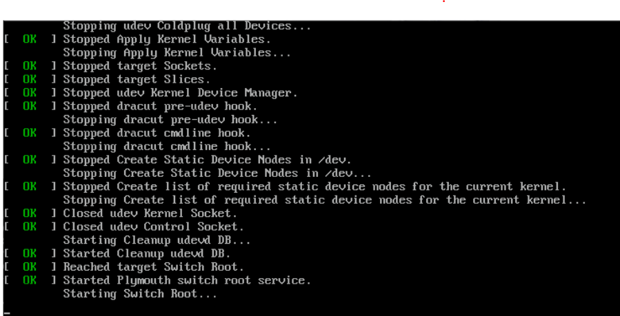 用户在系统下运行某压测脚本后,再次重启时,卡在打印显示“Starting Switch Root”的界面,且键盘无响应: