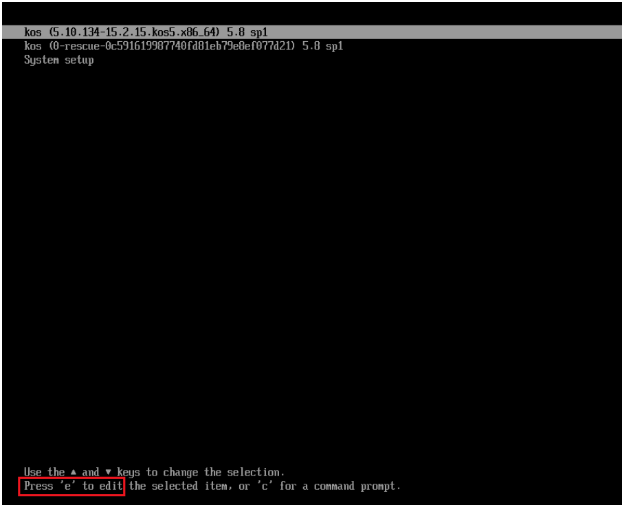 重新启动系统,在启动到grub界面时,按“e”编辑内核启动参数: