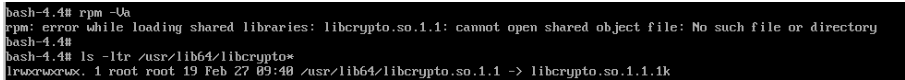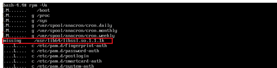 d. 继续使用rpm –Va检查,发现还有丢失libssl.so.1.1.1k文件,同样从正常系统中还原该文件,直到校验正常无丢失文件