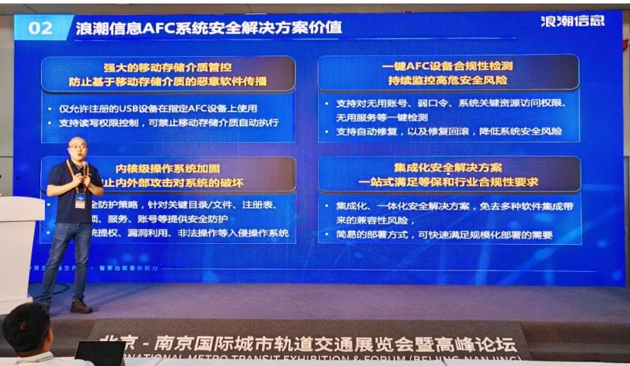 2024年6月13日-15日,由中国城市轨道交通协会主办的“多元融合 高质量可持续发展”2024北京-南京国际城市轨道交通展览会暨高峰论坛在南京国际博览中心盛大开幕。浪潮信息现场展示了服务器操作系统KeyarchOS(简称KOS),发布安全防御软件KSecure,以及面向轨道交通AFC终端的“主动防御+白名单”防护方案。