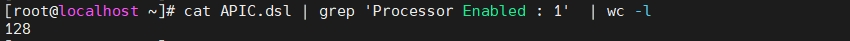 (5)通过对APIC.dsl文件的检查,对可用CPU核心数量的统计分析,结果确认仅有128个核心被标记为已启用(即Processor Enabled),这表明,BIOS填充并传递给操作系统的APIC表中仅声明了128个可用的处理器核心。