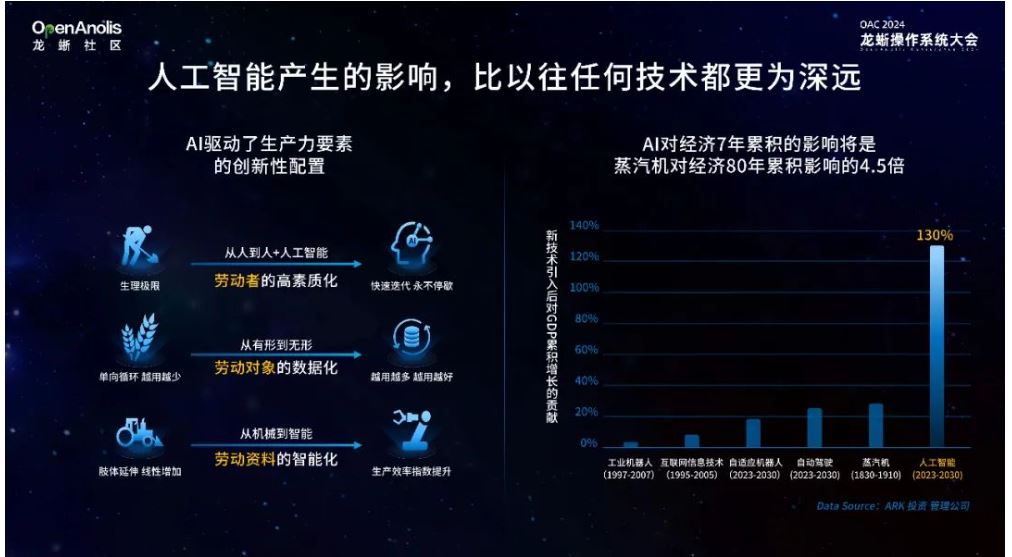 本次大会,龙蜥社区正式发布了“CentOS替代计划”“Anolis OS 23生态衍生计划”“AI应用推广计划”三大计划,并首次公布了“AI 原生操作系统”发展路线,提出AI容器镜像、智能运维 AIOps、OS Copilot 文档建设等三大探索方向,加速 AI 与操作系统的融合发展。