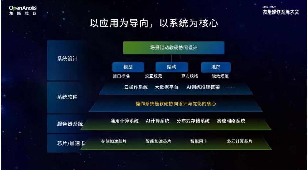 操作系统如何满足AI应用场景需求?未来发展趋势如何?2024龙蜥操作系统大会上,龙蜥社区副理事长张东分享了题为《智算引领 系统创新》的主题演讲,指出AI原生应用对操作系统提出更高要求,需要以应用为导向、以系统为核心进行架构创新设计,要打造最AI的服务器操作系统。