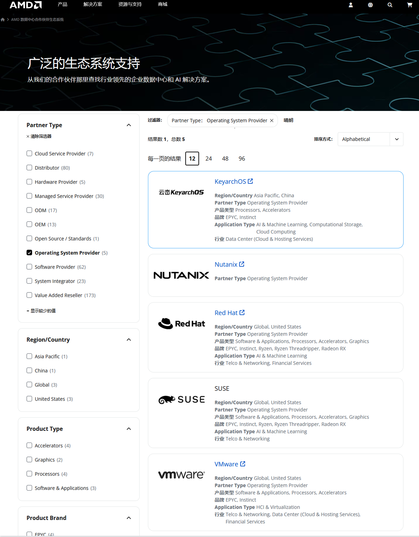 近日,继Nutanix、Red Hat、SUSE、VMware之后,浪潮信息云峦KeyarchOS(简称KOS)通过严格、全面的联合测试,正式加入AMD生态联盟,得到官网认证、成为国内首个AMD操作系统合作伙伴。此前,KOS率先支持了第五代AMD EPYC(霄龙)处理器——Turin,Turin具有高达192个核心与384个线程,支持DDR5-6400 ECC内存与PCIe 5.0/CXL 2.0通道,通过软硬融合使能新特性,实现了IPC提升17%、AI性能提升3.8倍等显著改进,充分发挥出硬件卓越的性能、能效比与可拓展性,在人工智能、云计算与边缘计算等场景下,实现了高效的资源优化与可靠的运维支持。