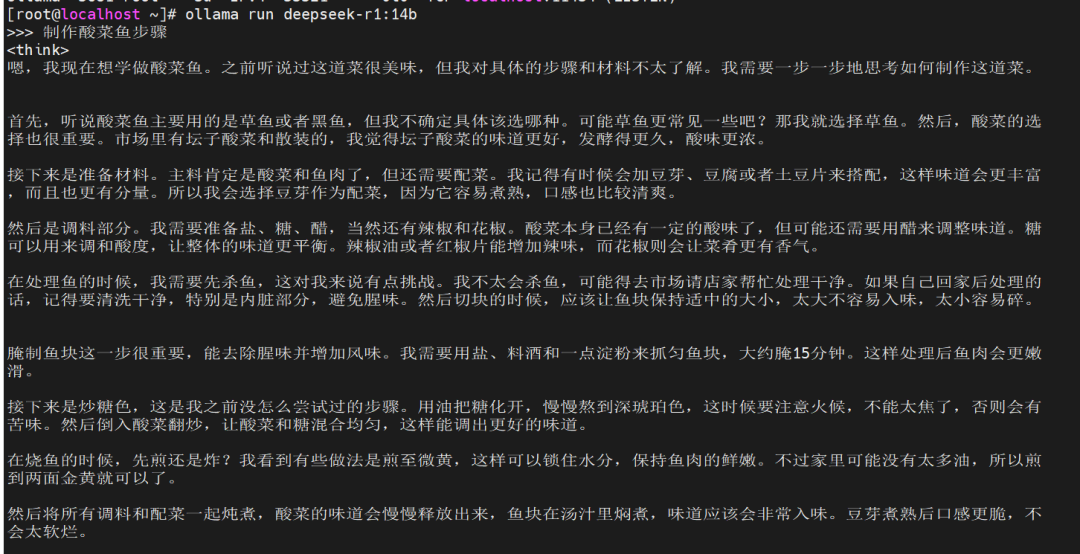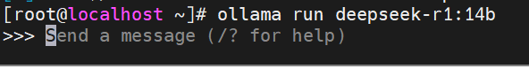 当 DeepSeek-r1模型拉取完成后,输入该命令即可在对应的命令行界面(Linux的终端)中,直接与模型进行交互。
