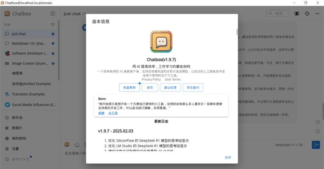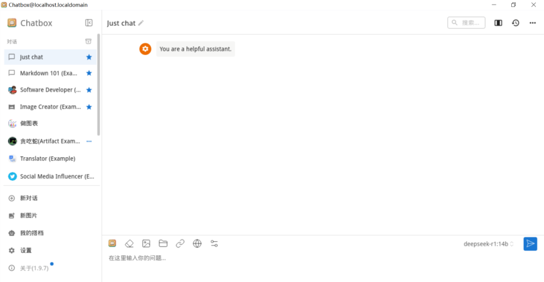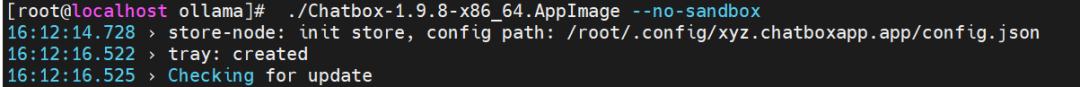 打开可视化界面:./Chatbox-1.9.7-x86_64.AppImage --no-sandbox