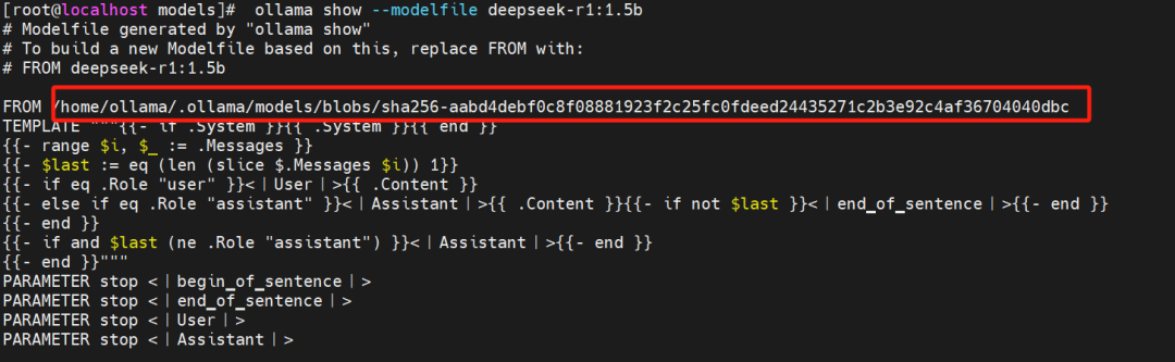 查看模型列表:查看模型信息:复制该文件并命名为.gguf文件。将.gguf文件拷贝出来。