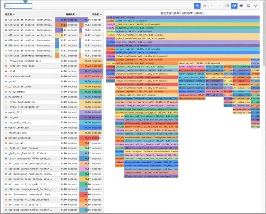首先,AI系统分析工具将GPU核函数与CPU进程调用栈进行匹配和融合,全面呈现了各项与系统性能相关指标,包括GPU、CPU、内存、网络流量等,还涵盖了模型训练与推理相关监控,如吞吐量、并发度、时延分布、缓存命中率、重计算次数等,以及OOM、请求处理超时、CUDA API调用失败、序列中断等异常事件。