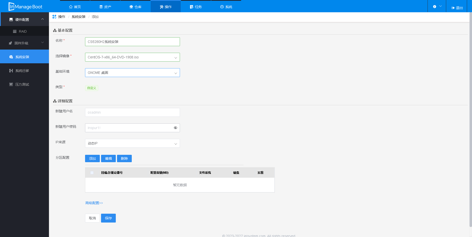 服务器统一的裸机批量管理平台(InManage Boot),支持固件管理、硬件配置、系统部署和迁移、压力测试等功能