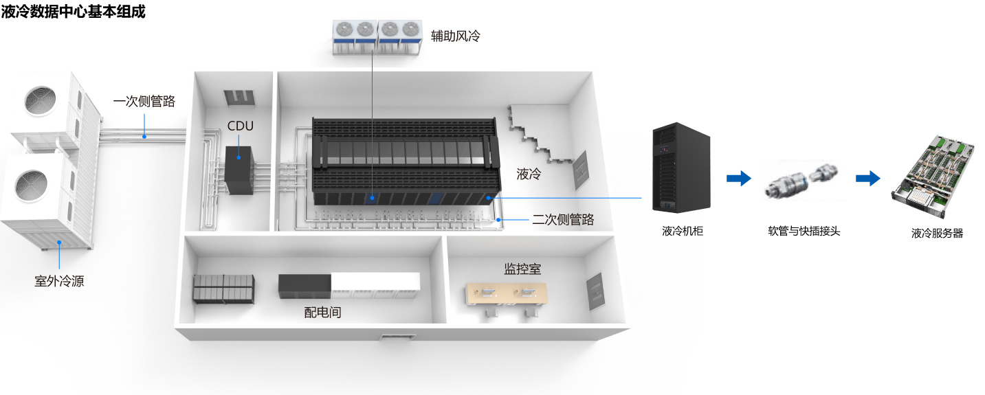 随着算力的增长,液冷服务器加速普及,传统风冷机房如何部署液冷服务器成为难题,浪潮信息推出风液混合冷却数据中心解决方案。在不改造现有机房的前提下,可快速实现液冷服务器在当前风冷机房的部署。