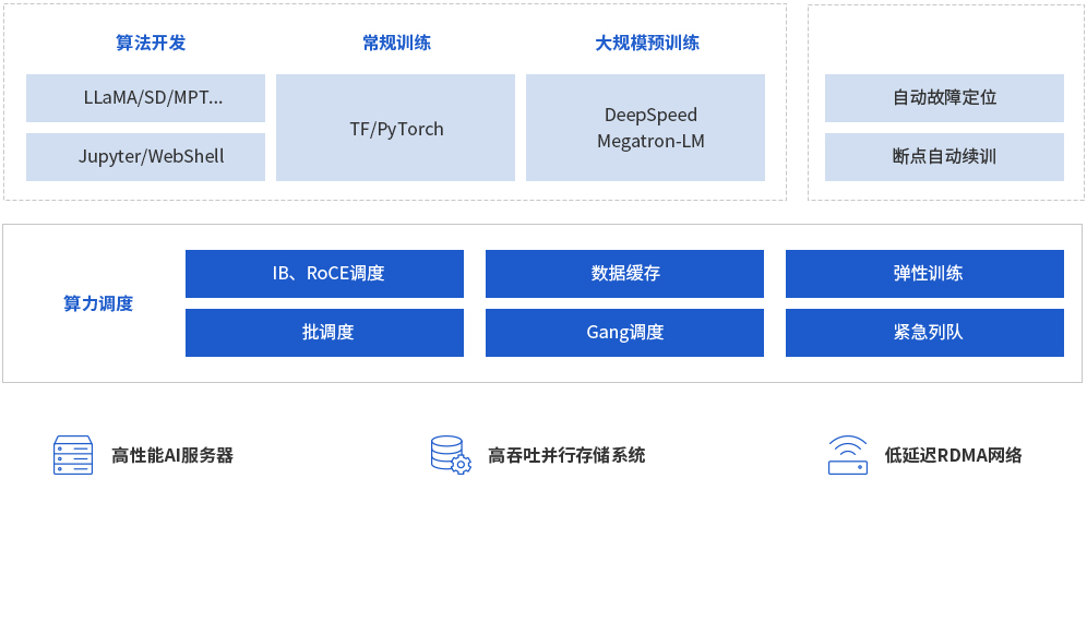 集群训练效率低,故障频发会导致训练中断后不能及时恢复,降低大模型训练的成功概率,提升训练成本。