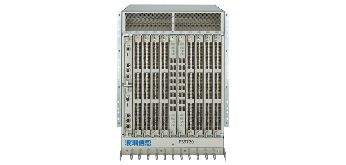 2. FS9720导向器应用于大型企业网络,14U,共8个垂直刀片插槽,最大可提供384个64Gb/s线速端口或512个32Gb/s线速端口来用于设备连接。额外提供32条UltreScale ICL共128个端口用于机箱间互联。