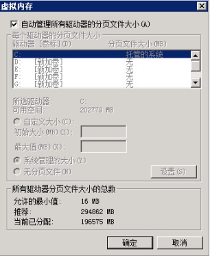 这是由于系统默认自动管理所有驱动器的分页大小,自动分配的虚拟内存大小跟物理内存大小相当。