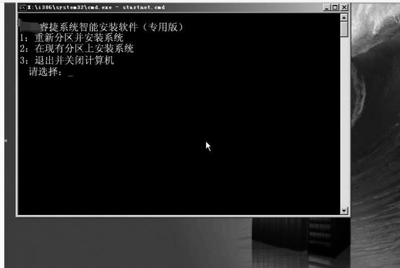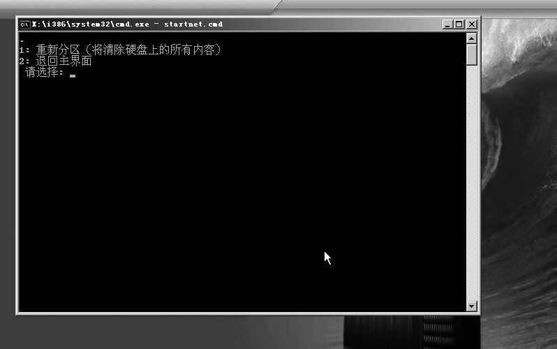 输入1,按回车键,选择【重新分区并安装系统】,将清除当前硬盘上的所有数据;