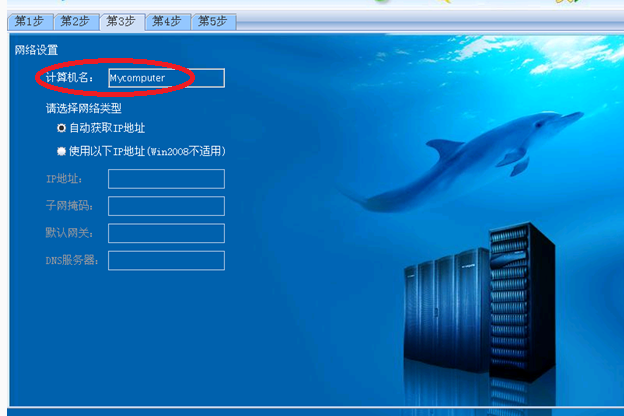 点击设置界面上的【第3步】按钮,用户可以对要安装的Windows操作系统进行网络设置。计算机名:可根据需要填写,例如:计算机名:computer01,也可不填写。