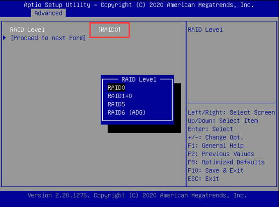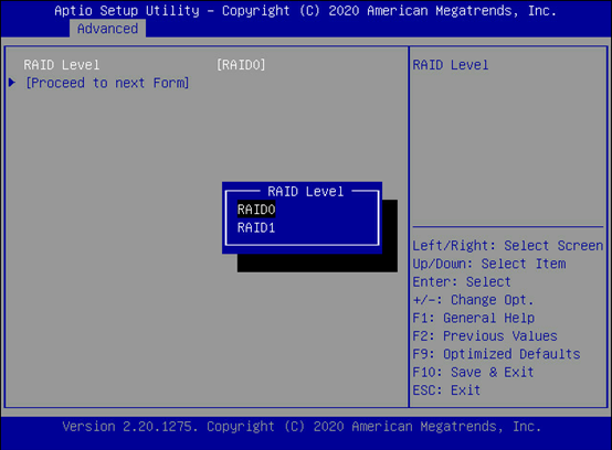 选择Raid0,点击Proceed to next Form。