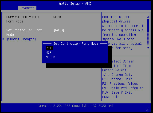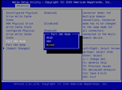 若机器有RAID阵列,只显示RAID和MIXED。删除所有阵列会显示HBA