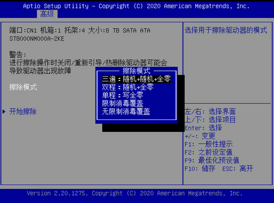 选择擦除模式。为了便于理解,附上中文界面。