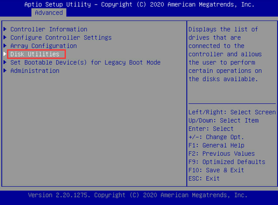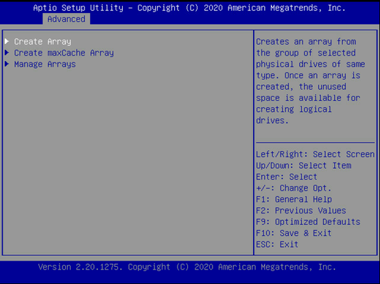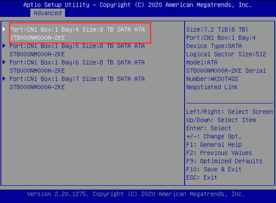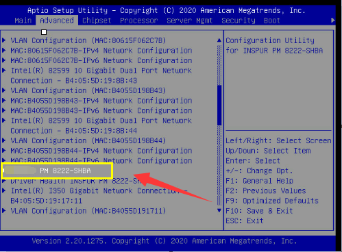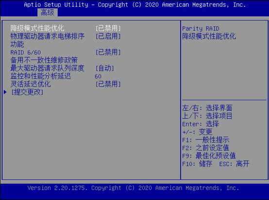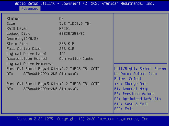 在UEFI模式下查看阵列状态,在Advanced界面找到阵列卡信息,回车进入。
