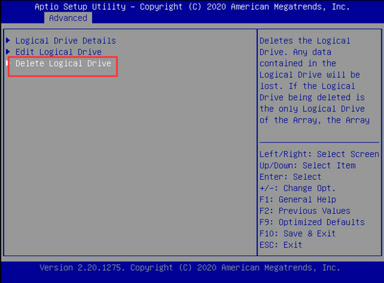 选择Delete Logical Drive。