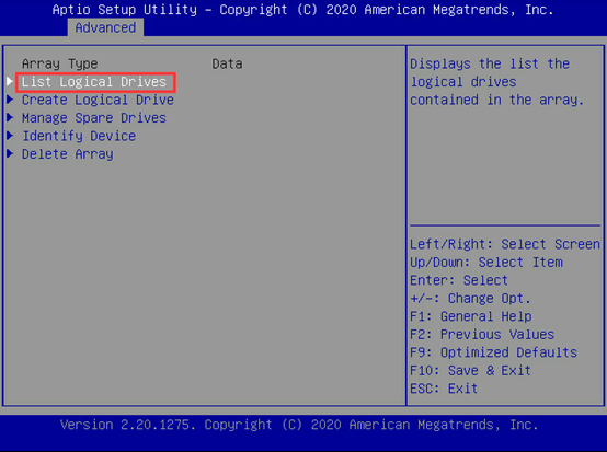 如下图,选择“Logical Drive Details”并按【Enter】进入下一页。